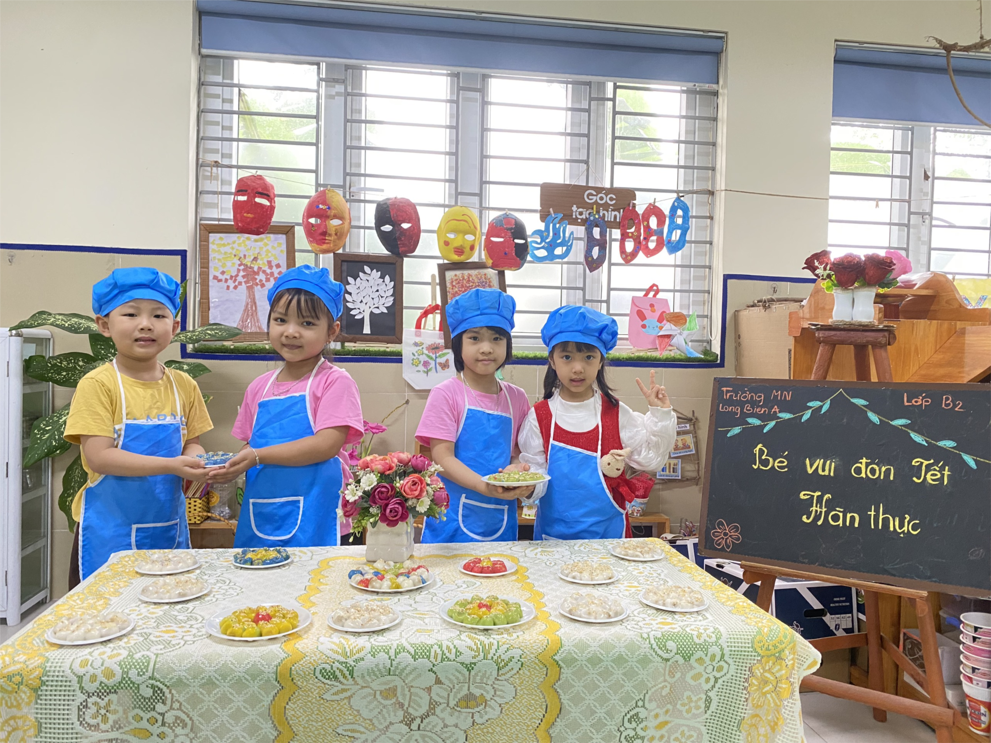 đón tết Hàn thực”. Trước khi bắt tay vào làm, các bé được cô giáo kể về ý