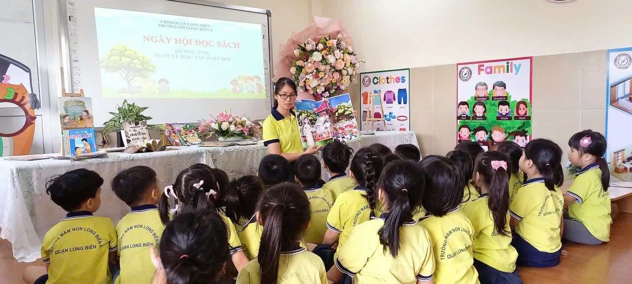 Một số hình ảnh ghi lại các hoạt động trong “Tuần lễ đọc sách của bé” tại Trường Mầm non Long Biên A: