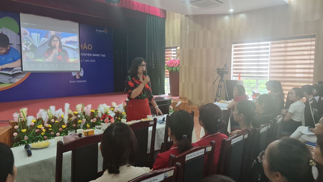 !important; Chiều ngày 06/07/2023, Trường Mầm non Long Biên A tham dự Chương trình tập huấn “Kể chuyện sáng tạo” cùng chuyên gia Anna Salaman do Phòng GD&ĐT quận Long Biên phối hợp với Trung tâm ngoại ngữ Enspire tổ chức.