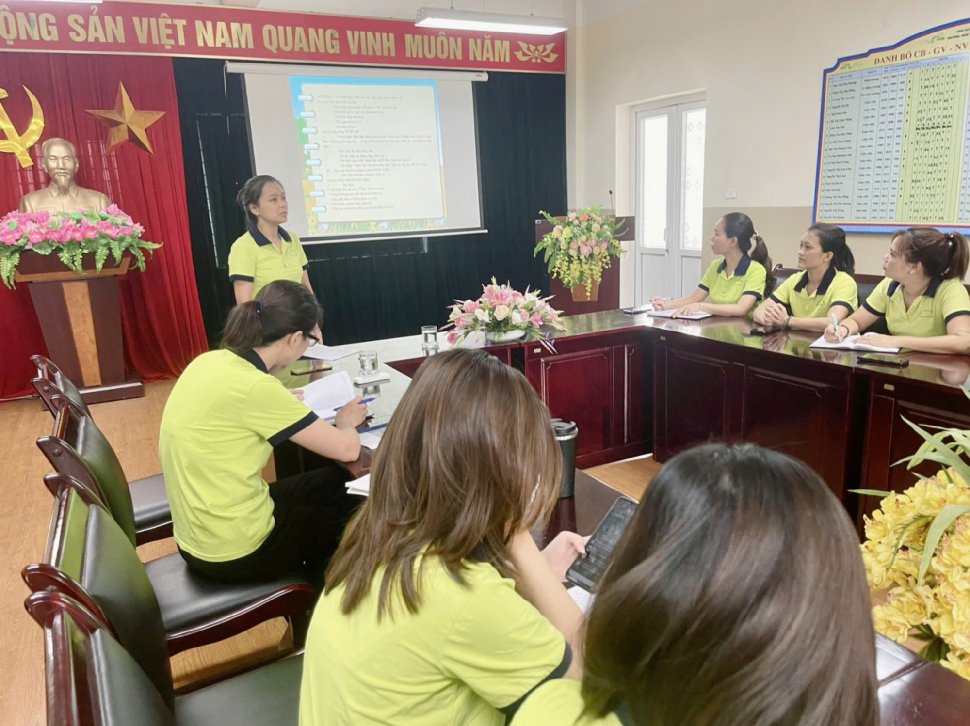 Tham dự buổi tập huấn có đ/c Trần Thị Thu Hằng – Phó hiệu trưởng cùng đội ngũ giáo viên trong nhà trường.