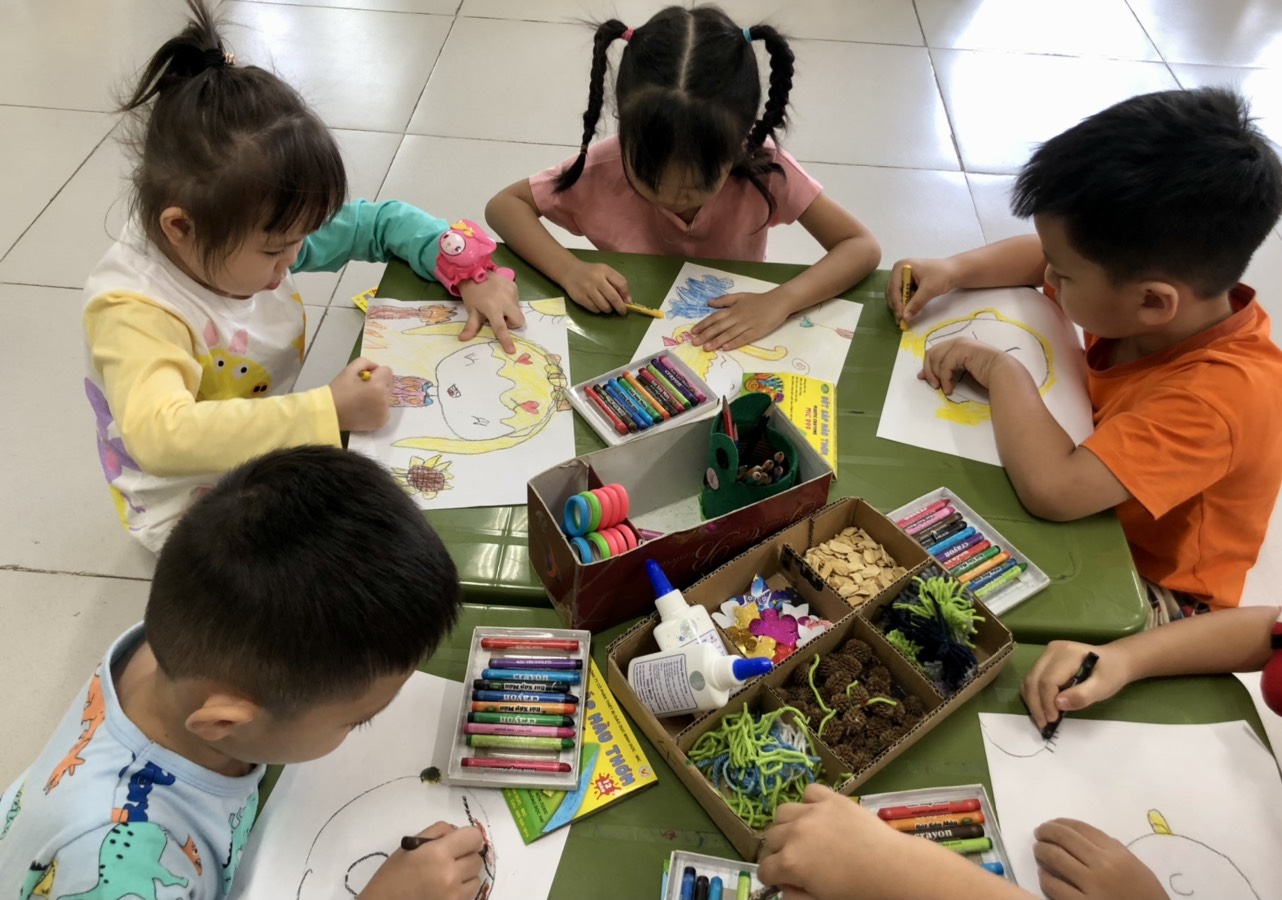 Dưới đây là một số hình ảnh các bé lớp Mẫu giáo lớn A2 hào hứng tham gia hoạt động tạo hình "Vẽ và trang trí các khuôn mặt có trạng thái cảm xúc khác nhau":