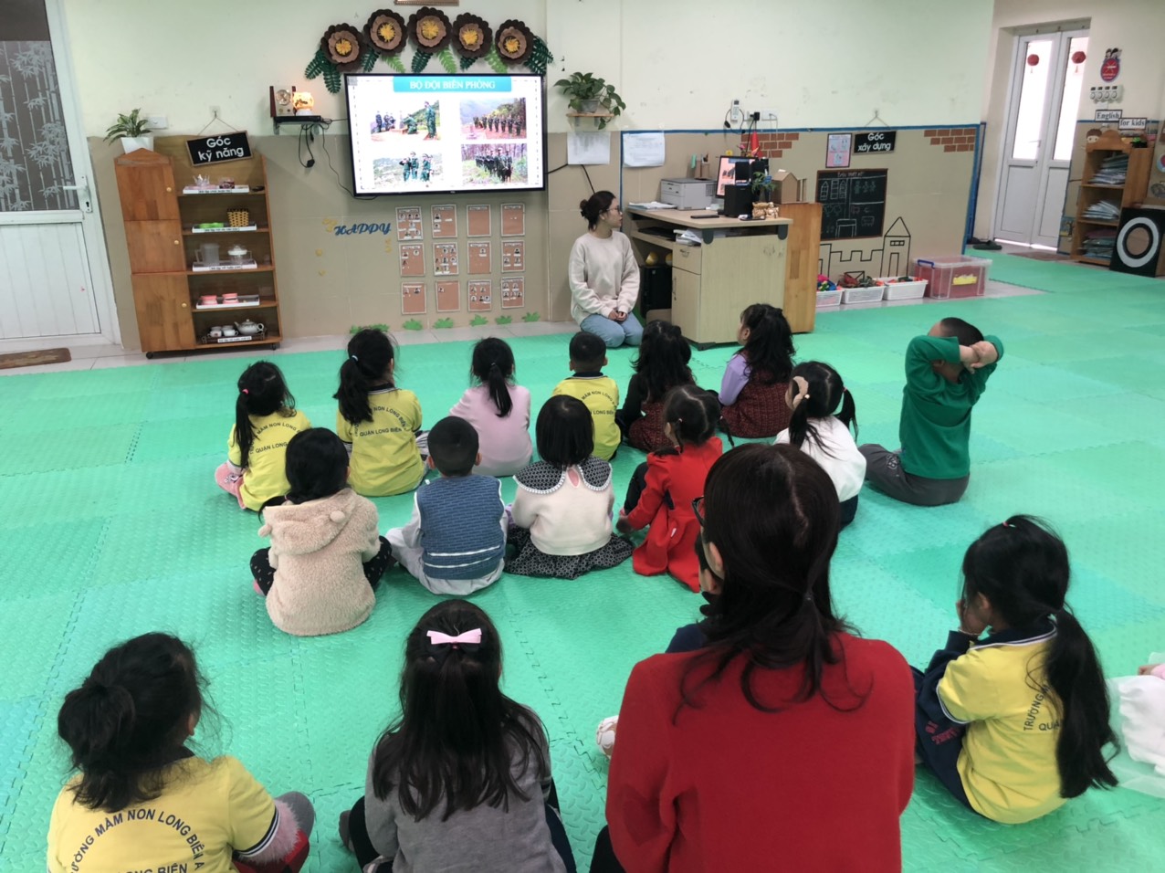 Để hưởng ứng chà !important;o mừng ngày Thành lập Quân đội Nhân dân Việt Nam ngày 22/12, các bạn nhỏ lớp MGL đã có một buổi học khám phá trò chuyện tìm hiểu về các chú bộ đội. Qua bài học các bạn nhỏ dã biết được những vất vả, hy sinh trong thầm lặng của các chú bộ đội ngày đêm làm việc, canh gác bảo vệ chủ quyền lãnh thổ Việt Nam