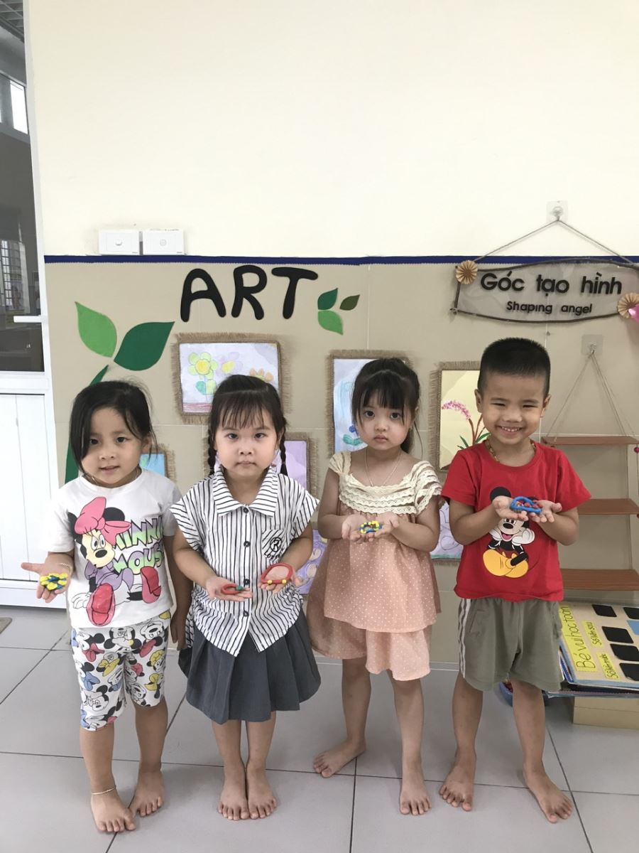 Và hôm nay, các bé lớp B1 rất vui khi nặn những chiếc vòng xinh xắn.