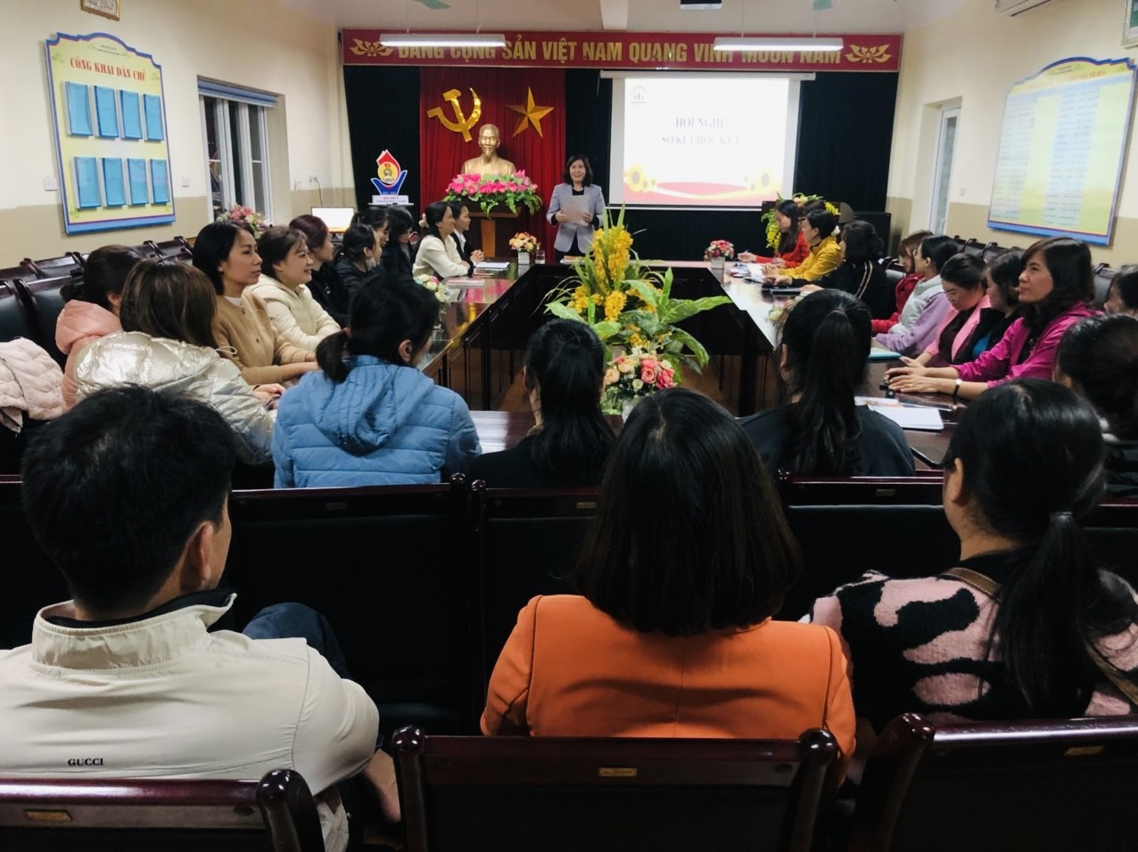 Tại Hội nghị, đ/c Đào Thị Thu Hương - Bí thư chi bộ - Hiệu trưởng nhà trường đã thông qua báo cáo sơ kết học kỳ 1 năm học 2023 - 2024 Trong báo cáo, đ/c đã biểu dương những thành tích mà nhà trường đã đạt được trong học kỳ vừa qua. Đồng thời, đưa ra phương hướng, mục tiêu, nhiệm vụ mà nhà trường sẽ tiếp tục cố gắng, phấn đấu trong học kỳ tới. Và mong rằng với sự đoàn kết của tập thể, chung sức đồng lòng, quyết tâm vượt khó của đội ngũ CBGVNV, nhà trường sẽ tiếp tục gặt hái được nhiều thành quả hơn nữa trong công tác dạy và học của nhà trường.