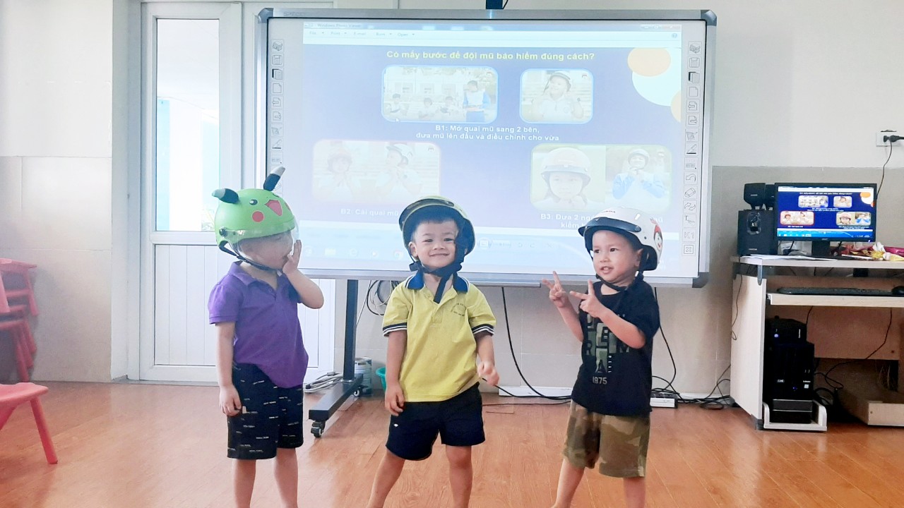 Qua buổi học trẻ rất hứng thú tham gia hoạt động và biết được sự quan trọng của việc đội mũ bảo hiểm khi đi xe máy, phòng tránh tai nạn, đảm bảo an toàn cho tính mạng của mình của gia đình và của toàn xã hội hãy đội mũ bảo hiểm khi tham gia giao thông.