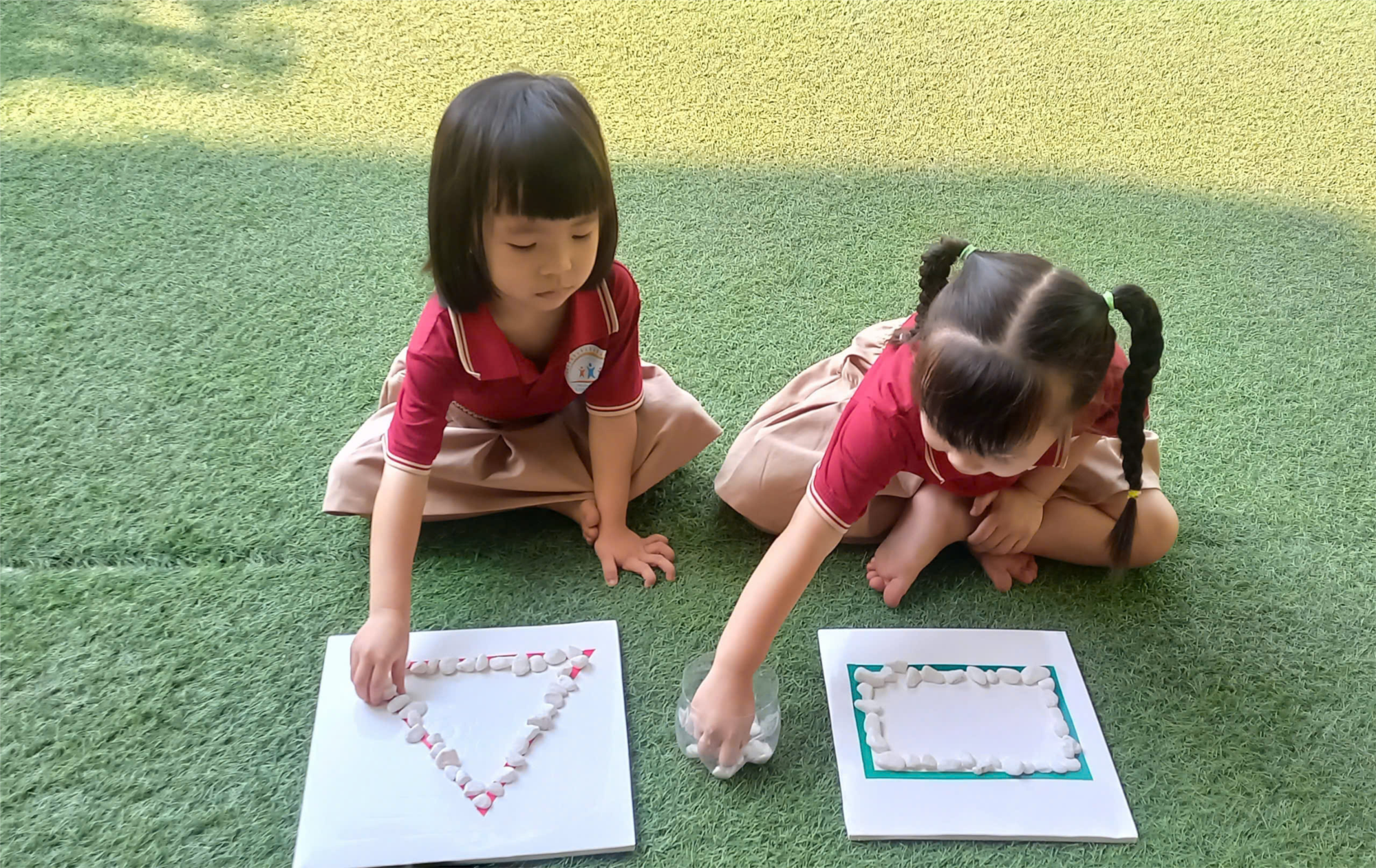 Được ra sân, ngồi dưới bóng mát của những tán cây trong tiết trời mùa thu, cùng các bạn chơi những trò chơi sáng tạo thì còn gì tuyệt vời hơn. Chỉ với những nguyên vật liệu đơn giản và gần gũi như: khuy, hột hạt, vỏ ngao, sỏi, cành cây, lá cây..... cũng đã mang đến cho các bạn nhỏ lớp B1 rất nhiều niềm vui và sự sáng tạo. Chúng ta hãy cùng đến với giờ hoạt động góc của các banh nhỏ lớp B1 nhé.