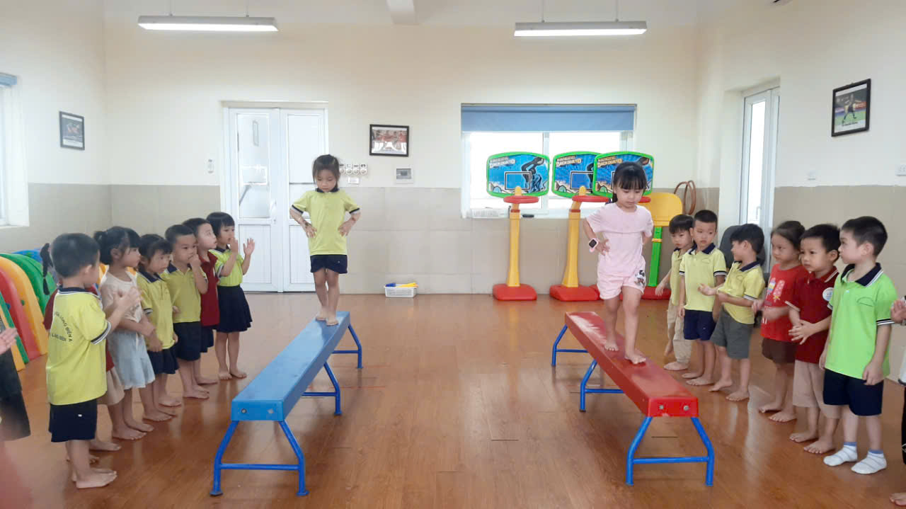 Hoạt động vui chơi tại phòng thể chất là hoạt động không thể thiếu trong chế độ sinh hoạt một ngày của trẻ ở trường mầm non. Tham gia hoạt động trẻ được tiếp xúc trực tiếp khám phá thỏa mãn trí tò mò của trẻ cũng như giúp trẻ tăng cường sức khỏe và thể lực. Được vui chơi là khoảng thời gian vô cùng quý giá đối với sự phát triển của trẻ mà ít thời điểm sinh hoạt nào khác có thể so sánh được. Chơi tại phòng thể chất là khoảng thời gian trẻ được thỏa mãn thực hiện các vận động giải phóng năng lượng. Chính vì vậy các cô giáo lớp MGN B2 đã cho các con thường xuyên được hoạt động vui chơi tại phòng thể chất để các con được khám phá, vận động giúp con phát triển về mọi mặt về trí tuệ cũng như sức khỏe của trẻ.