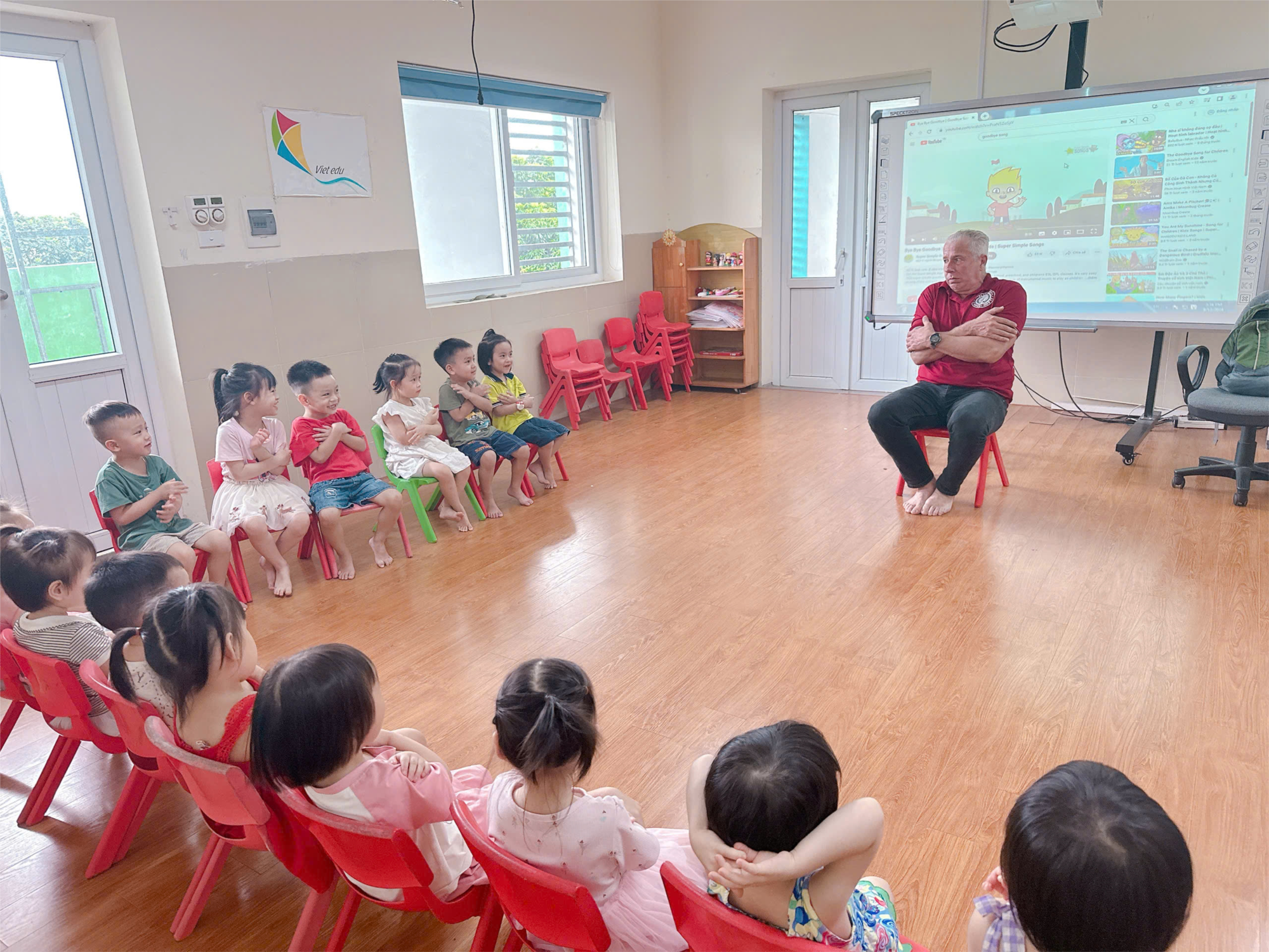 Cho con trẻ tiếp xúc với tiếng anh từ sớm sẽ giúp ích rất nhiều cho khả năng giao tiếp, ngôn ngữ của con sau này. Giai đoạn từ 4 đến 6 tuổi chính là giai đoạn vàng để bé bắt đầu học thêm một ngoại ngữ mới. Bé ở giai đoạn từ 4 đến 6 tuổi có khả năng bắt chước rất chuẩn xác cách phát âm của người lớn. Do đó, ở thời điểm này, bé sẽ có thể tiếp thu 2 ngôn ngữ một cách rất dễ dàng. Việc cần làm của các bậc phụ huynh lúc này là hãy xây dựng thói quen học tiếng Anh cho con trẻ như một niềm vui, sở thích. Dưới đây là một số hình ảnh hoạt động các bé lớp mẫu giáo nhỡ B3:
