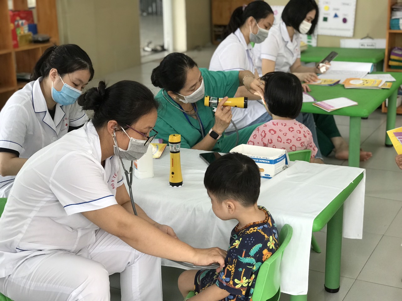 Một số hình ảnh trong buổi khám sức khỏe định kì cho trẻ tại trường Mầm non Long Biên A