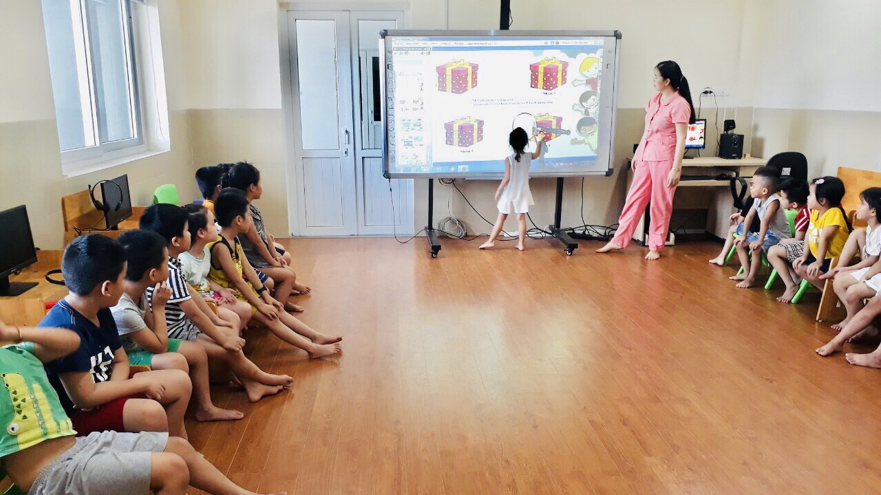Với mô hình tương tác, trẻ đóng vai trò trung tâm, trẻ chủ động tham gia vào các bài học, tự điều khiển bảng điện tử làm bài tập thực hành, tự kiểm tra kết quả và khả năng ngôn ngữ của mình hoặc chơi các trò chơi để được hiệu quả cao nhất cho mỗi bài học.
