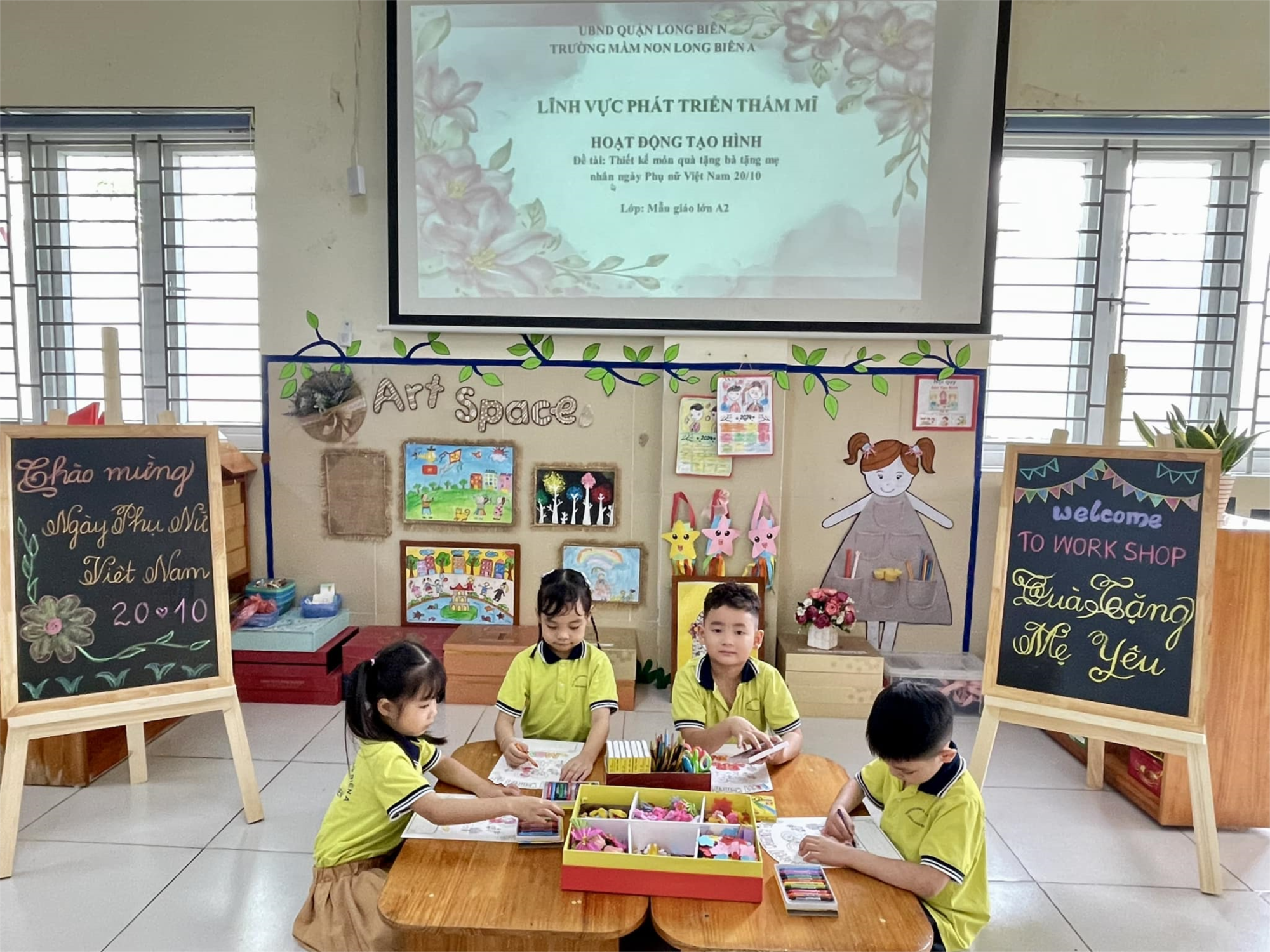 Nhân ngày Phụ nữ Việt Nam 20/10 bạn nhỏ lớp Mẫu giáo lớn A2 đã tự tay làm những món quà tặng bà tặng mẹ yêu, cùng với những lời chúc yêu thương nhất. Các con chúc Bà, chúc Mẹ luôn mạnh khoẻ, vui vẻ, hạnh phúc và bình an! Con yêu bà, con yêu mẹ rất nhiều!