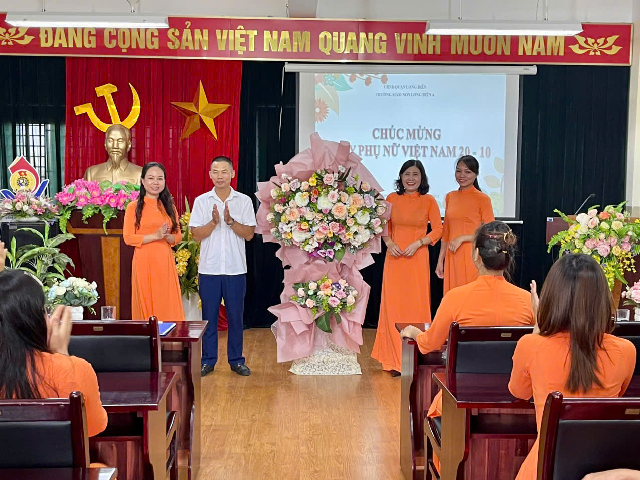 Nhân dịp kỷ niệm kỷ niệm 94 năm thành lập Hội LHPN Việt Nam và ngày phụ nữ Việt Nam 20/10, chiều ngày 17/1 0/2024 Công đoàn trường Mầm non Long Biên A phối hợp với nhà trường tổ chức chương trình “Gặp mặt chúc mừng ngày phụ nữ Việt Nam” với sự tham gia của toàn thể cán bộ, giáo viên và nhân viên nhà trường.