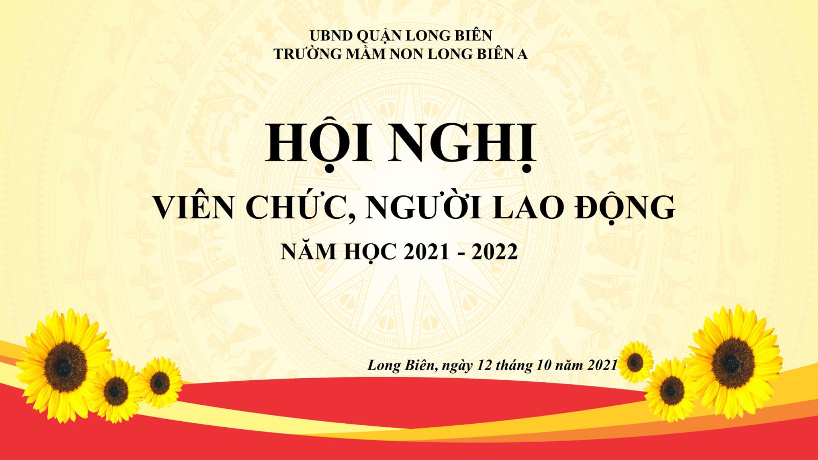 Sáng ngày 12/10/2021 Trường MN Long Biên A đã long trọng tổ chức Hội nghị viên chức, người lao động năm học 2021 – 2022 nhằm phát huy quyền làm chủ, năng lực sáng tạo của đội ngũ CB, CC, VC trong nhà trường và nhằm thực hiện tốt nhiệm vụ năm học 2021 - 2022.