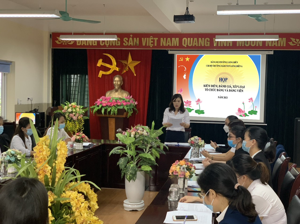 Căn cứ kết quả lãnh đạo, chỉ đạo thực hiện nhiệm vụ chính trị tại trường MN Long Biên A, ngày 17/11/2021 chi bộ trường MN Long Biên A họp kiểm điểm, đánh giá, xếp loại chất lượng năm 2021 đối với tổ chức đảng, đảng viên và tập thể cán bộ lãnh đạo, quản lý.