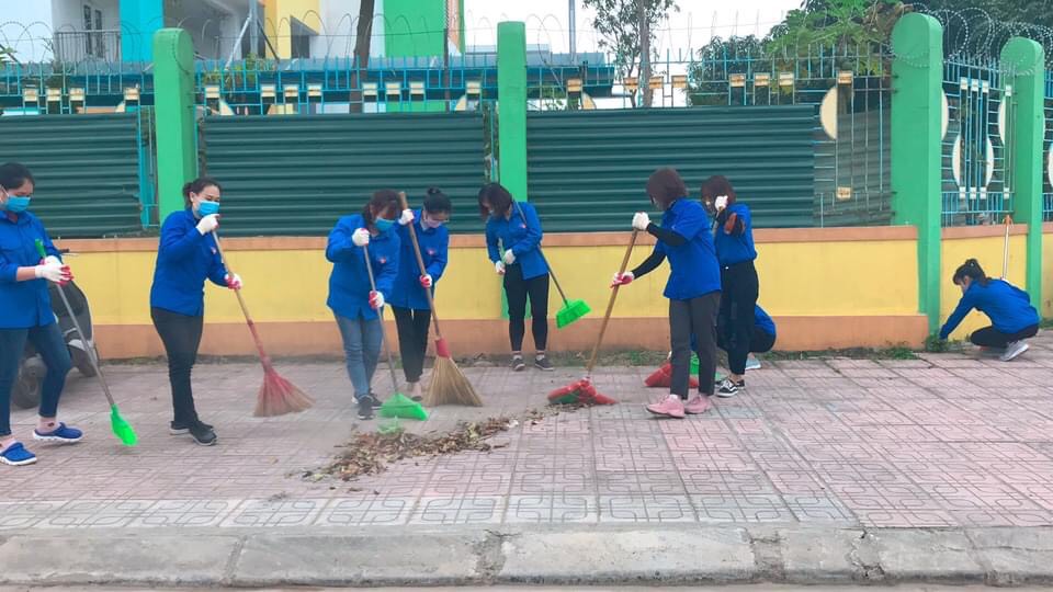 Tại buổi ra quân, các đoàn viên thanh niên tham gia tổng vệ sinh môi trường, quét dọn và thu gom rác thải khu vực xung quanh khuôn viên nhà trường.