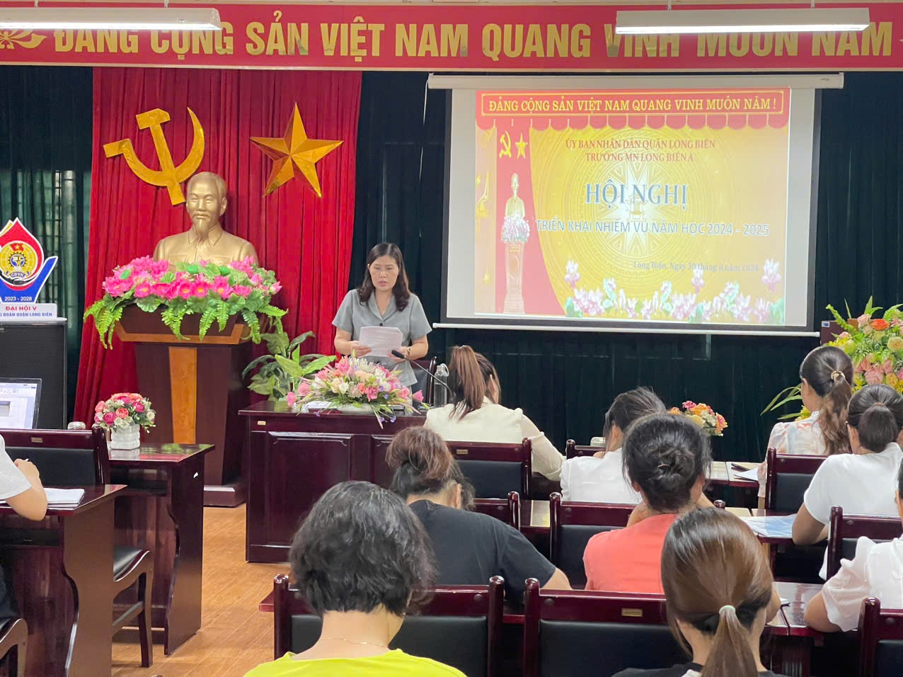 Thực hiện nhiệm vụ năm học 2024 - 2025, chiều ngày 30/8/2024, trường MN Long Biên A đã tổ chức Hội nghị triển khai nhiệm vụ năm học 2024 - 2025.