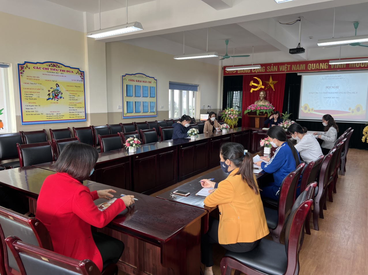 Tại hội nghị Đ/c Đào Thị Thu Hương - Hiệu trưởng nhà trường đã đọc báo cáo sơ kết học kỳ I - năm học 2021-2022, đánh giá cao những kết quả đã làm được trong học kỳ đồng thời rút kinh nghiệm những mặt còn tồn tại và đề ra phương hướng phấn đấu cho học kỳ II để nhà trường hoàn thành tốt nhiệm vụ năm học.