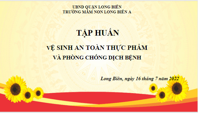 Sáng ngày 16/7/2022 trường mầm non Long Biên A phối hợp với phòng y tế quận Long Biên tổ chức lớp tập huấn "An toàn thực phẩm và phòng chống dịch bệnh".