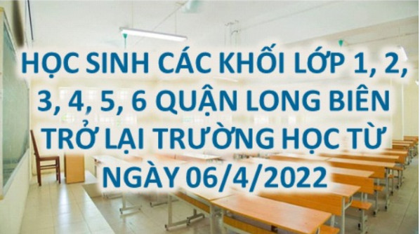 Ngày 04/4/2022, UBND quận Long Biên ban hành văn bản số 174/KH-UBND về việc tổ chức thực hiện việc đảm bảo an toàn khi học sinh lớp 1 đến lớp 6 đi học trực tiếp tại trường. Theo đó trên cơ sở tự nguyện, đồng thuận của cha mẹ học sinh, từ ngày 06/4/2022 (Thứ tư) học sinh các khối lớp 1, 2, 3, 4, 5, 6 bắt đầu học trực tiếp; Trẻ mầm non nghỉ học tại nhà.